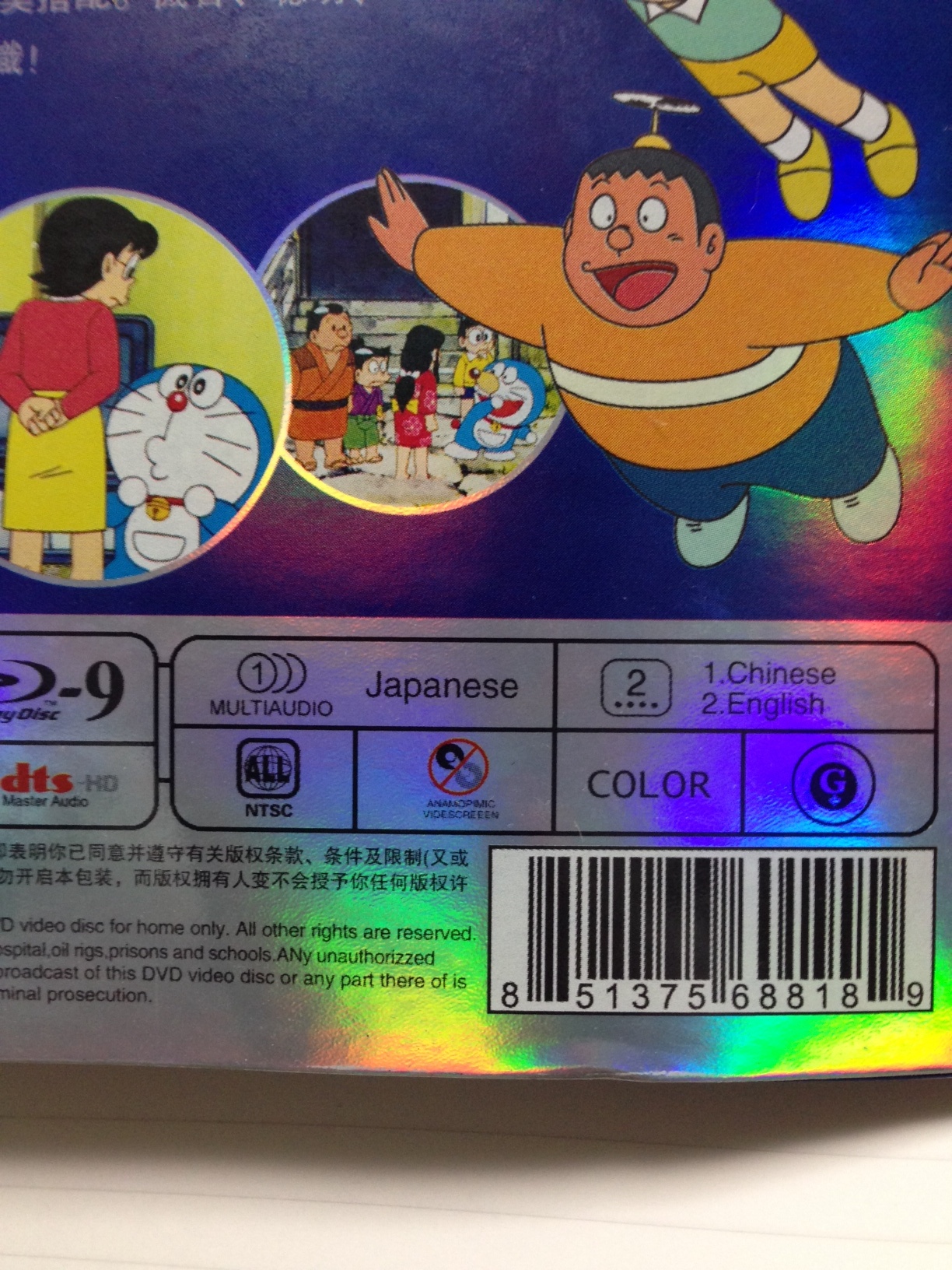 これは『ドラえもん』なのですが、書かれている文字は中国語、字幕は中国語と英語。